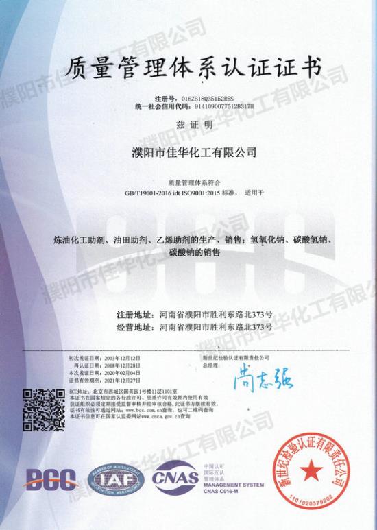由濮陽市工商局、濮陽市消費者協會、濮陽市工信局、濮陽市誠信濮商聯合會聯辦,由濮陽佳華化工有限公司協辦的濮陽市第三屆誠信論壇在濮陽佳華化工有限公司隆重舉行。本次論壇的主題是“誠信經營與綠色發展?!?/p> 2021-01-15